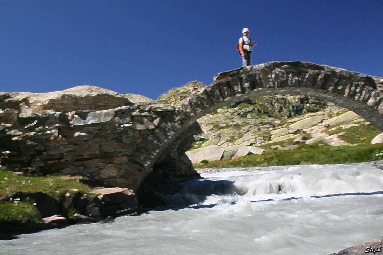 Pierre sur le pont de la reculaz